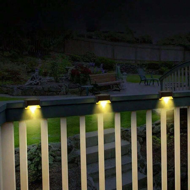 Pack of 4 solar-powered railing lights.